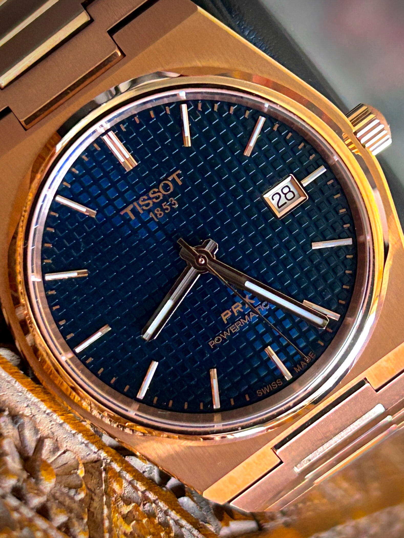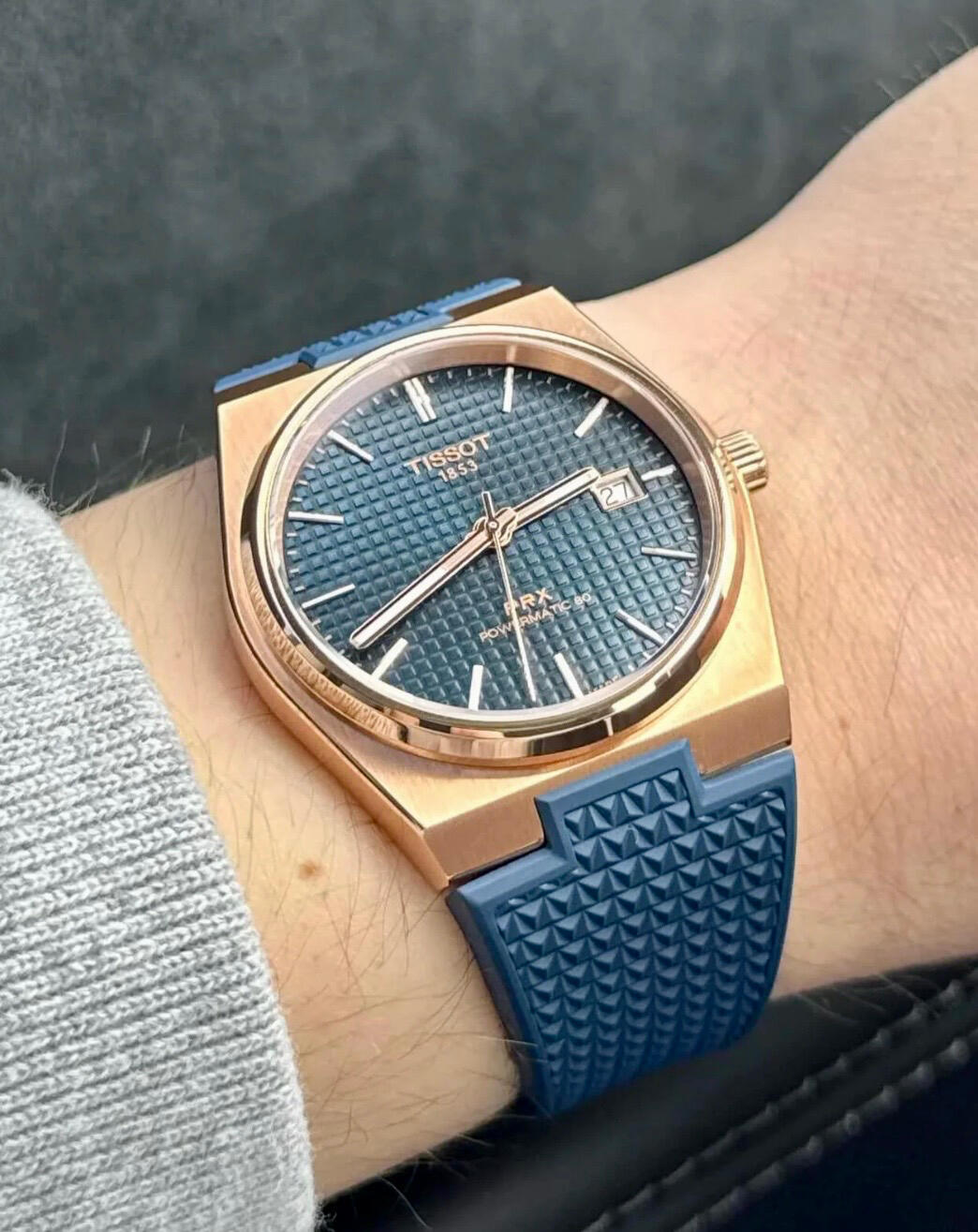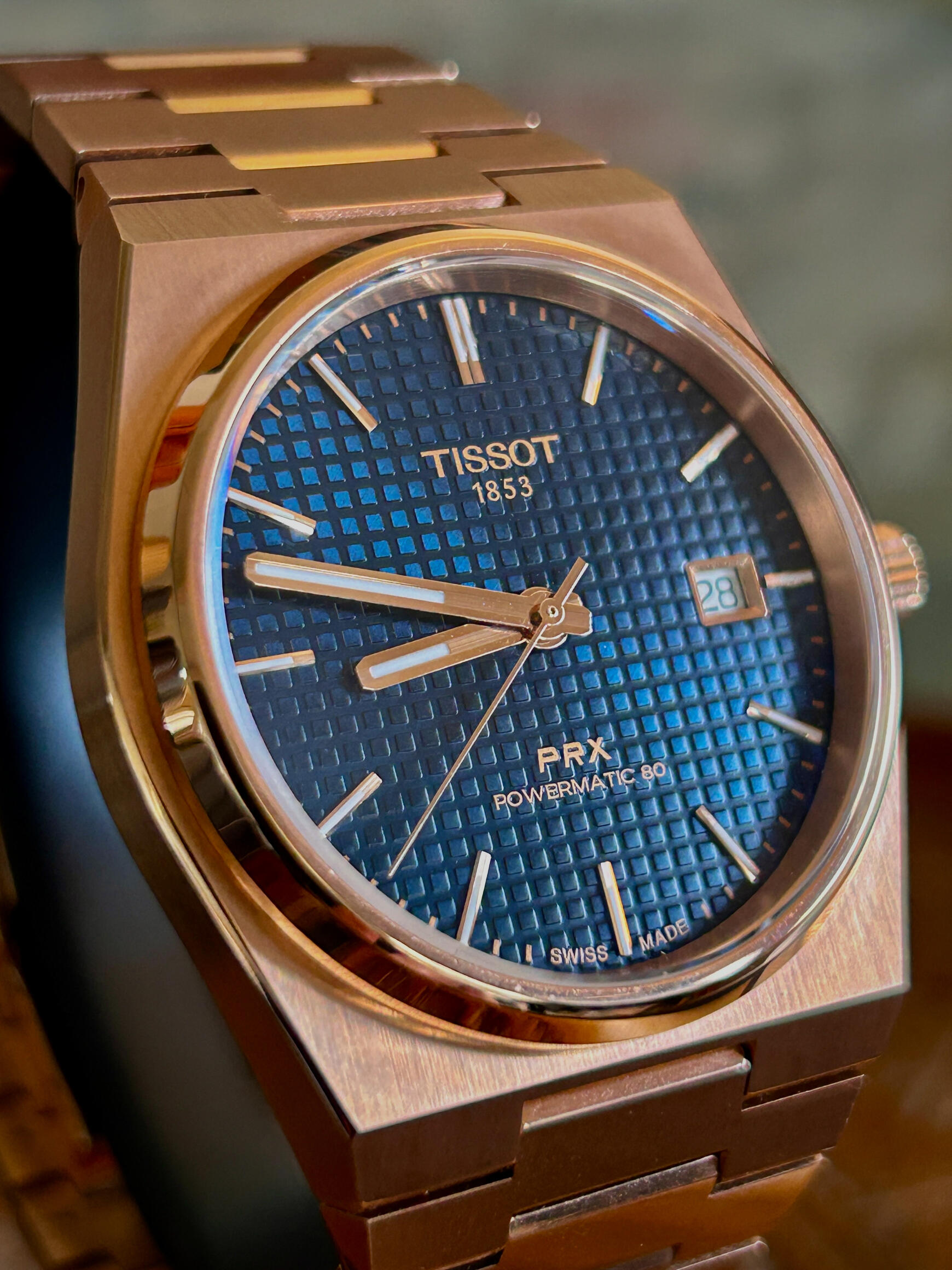 Tissot PRX Powermatic 80 – 40mm Rose Gold Edition, with additional premium rubber strap