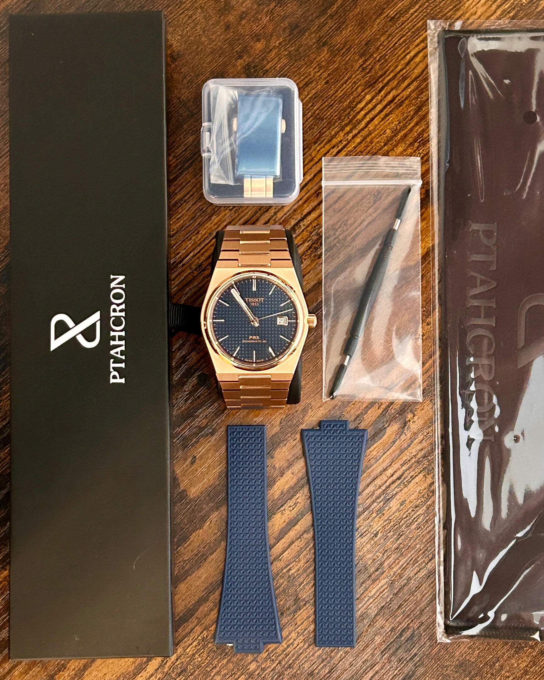 Grand Prize: Tissot PRX Powermatic 80 – 40mm Rose Gold Edition + Ptahcron rubber strap (Total ARV ≈ $1,150).